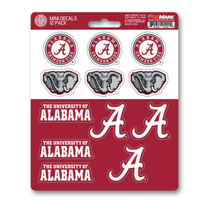 FANMATS 61148 NCAA - Alabama Crimson Tide 12 Count Mini Decal Sticker Pack 5 x 6.25 in.- Great Gift for Sports Fans - Works On Hard Surfaces - for Homes, Cars, Trucks, SUVs.Set Includes 12 Small, 1-inch DecalsConstructed From Premium Vinyl MaterialUV Resistant for Outstanding Durability, Boasts a Durable Color FinishEasy Peel and Stick BackingGreat for cars, laptops, coolers and other hard surfacesOfficially Licensed University of Alabama NCAA ProductPerfect Gift for Crimson Tide Fans, Students, Alumni, and Sports Collectors