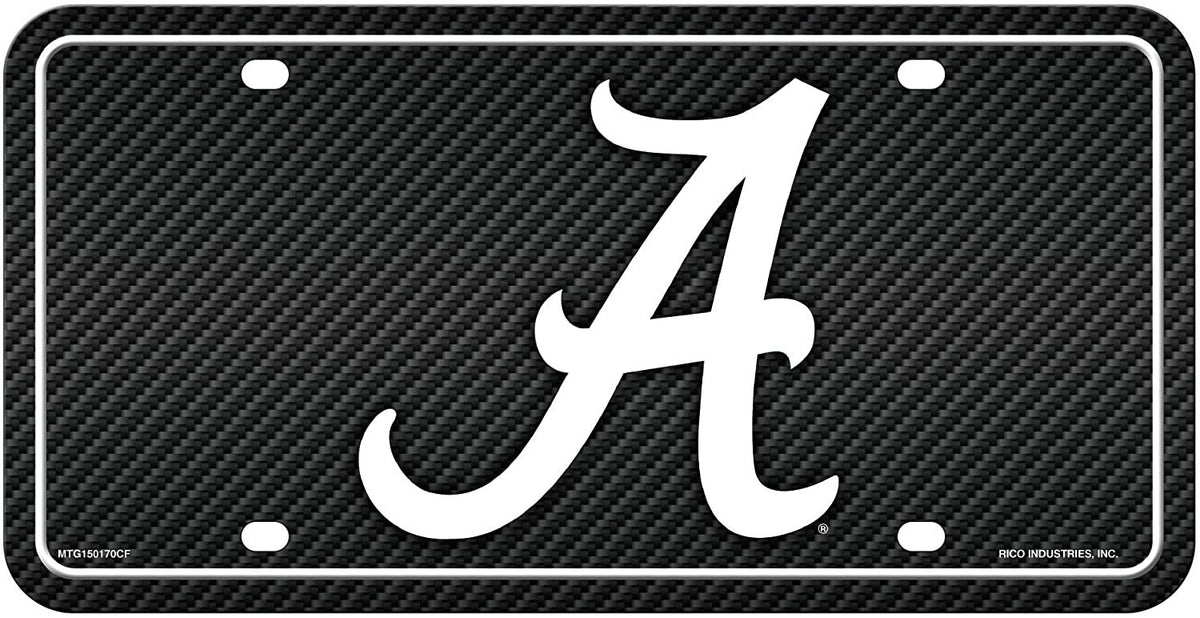 University of Alabama Crimson Tide Metal Auto Tag License Plate, Carbon Fiber Design, 6x12 Inch