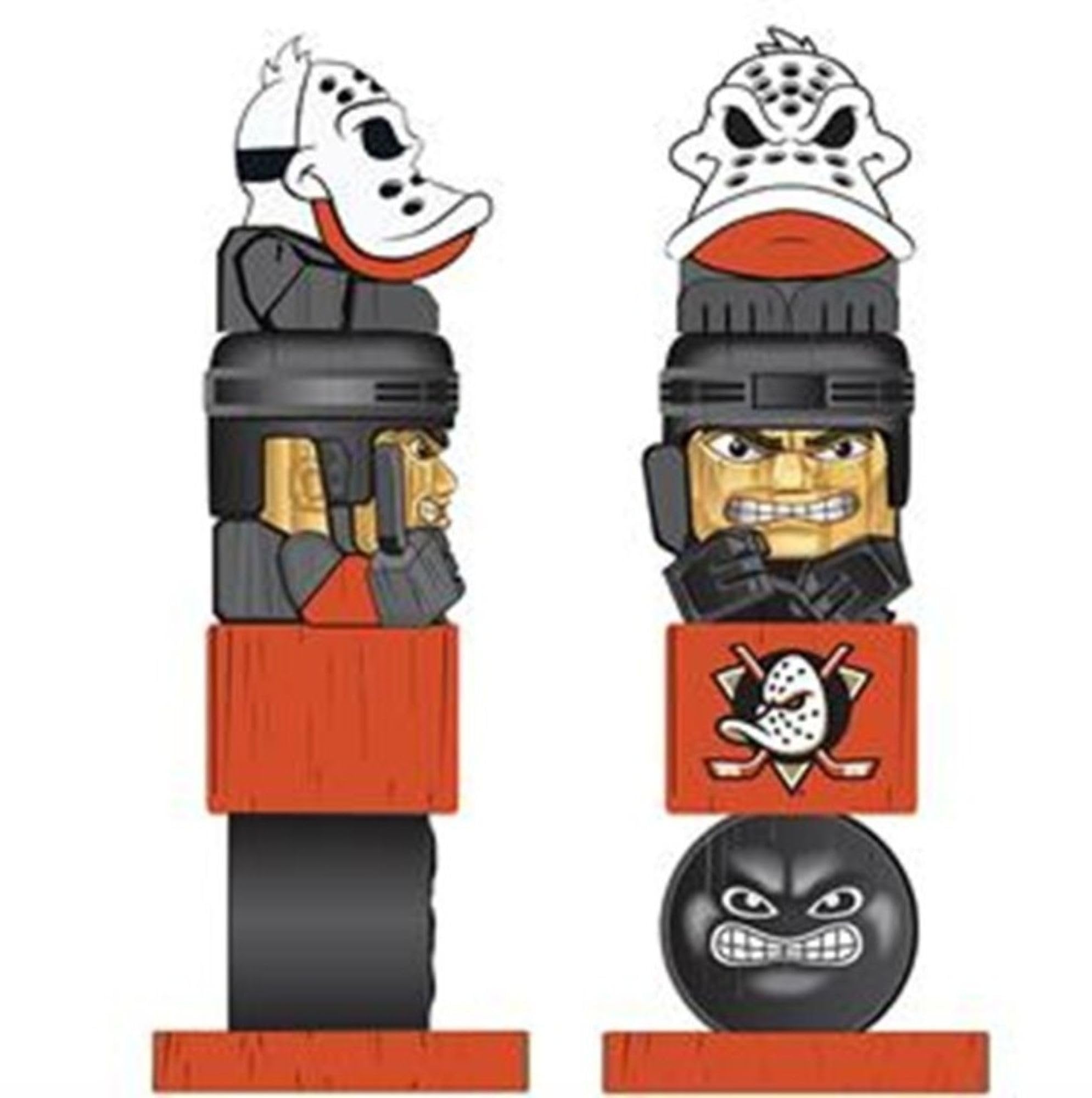 Show your Ducks pride with this whimsical 16-inch tiki totem garden statue! Perfect for indoor or outdoor display, this unique piece features multiple tiki-style faces adorned in Anaheim Ducks Retro team colors and logos. The statue includes playful elements like the iconic team emblem, creating a fun fusion of hockey and tiki culture. Crafted from durable resin with meticulous hand-painted details, this officially licensed NHL merchandise makes a striking addition to your garden, patio, or Ducks fan cave. The weather-resistant construction ensures your team spirit stays bright through rain or shine. Stack up your fandom with this distinctive collectible that stands out from traditional sports memorabilia. Whether nestled among your garden plants or greeting visitors on your porch, this tiki totem adds a tropical twist to your Ducks décor collection.