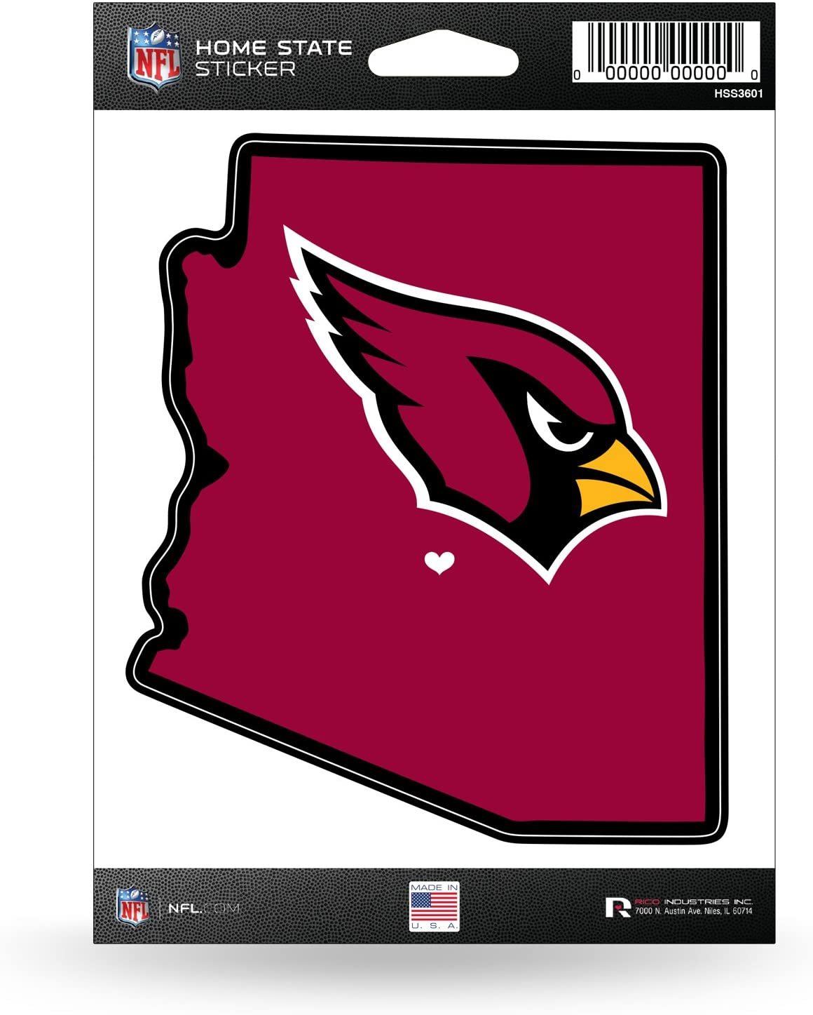 Show off your love for your team and home state with this Home State Sticker by Rico Industries. This eye-catching durable vinyl sticker measures approximately 5-inches by 5-inches and features the state outline. It is adorned with a heart shaped graphic to pinpoint the stadium location. It features bright and vibrant team colored graphics and is officially licensed. This would be a wonderful gift for anyone you know that shows their home state pride with passion. Made in the USA.Home State Sticker Measures Approximately 5-inches by 5-inchesDurable Vinyl Sticker Features State OutlineAdorned Heart Shaped Graphic to Pinpoint Stadium LocationBright and Vibrant Team Colored Graphics, Officially LicensedMade in the USAOfficially Licensed; Made in the USAThe Home State Sticker by Rico Industries combines not only your pride for your favorite team, but also the love of the state they call home. Made from weather resistant vinyl, this decal is able to go the distance through any adventures that await you. Whether it is just down the road, or across the country on that much needed vacation, you can take a piece of your favorite team with you!