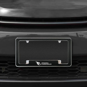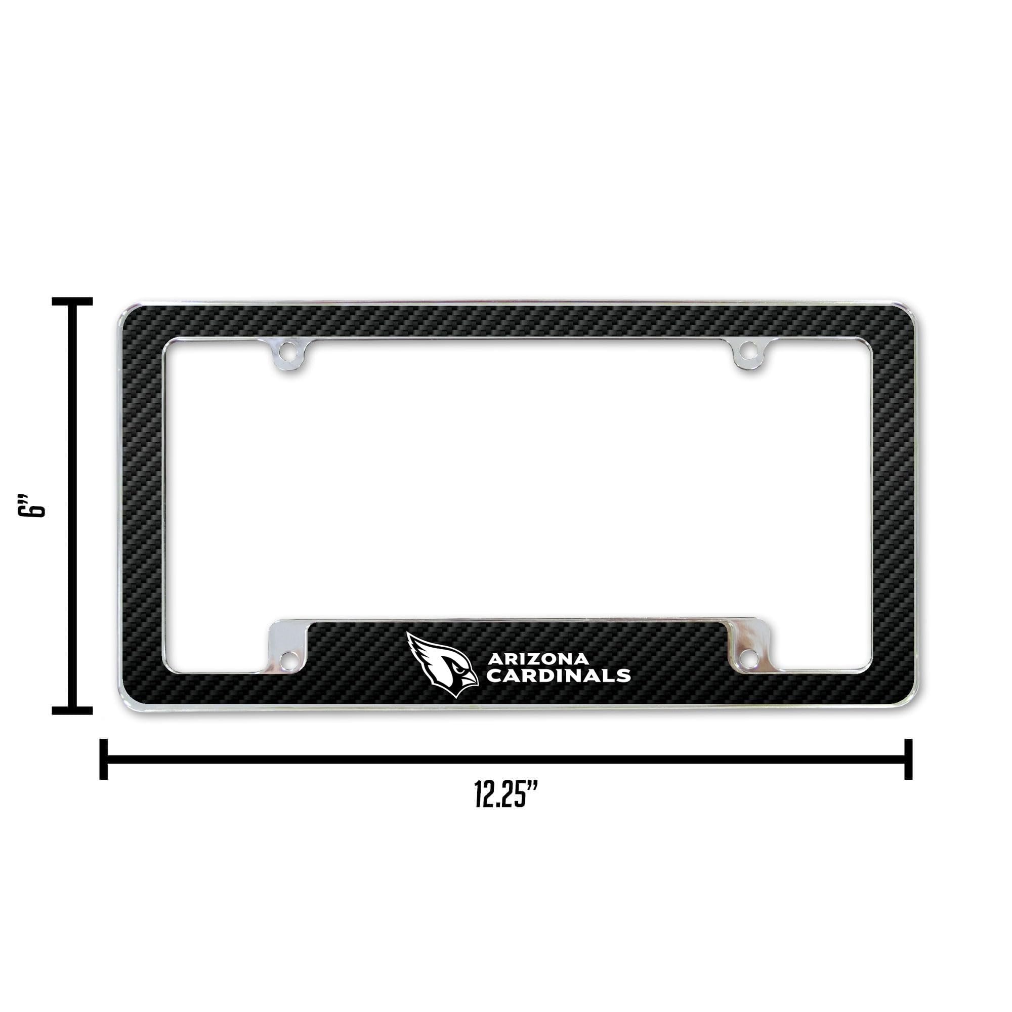 Arizona Cardinals Chrome Metal License Plate Frame Tag Cover, Carbon Fiber Design, 12x6 Inch