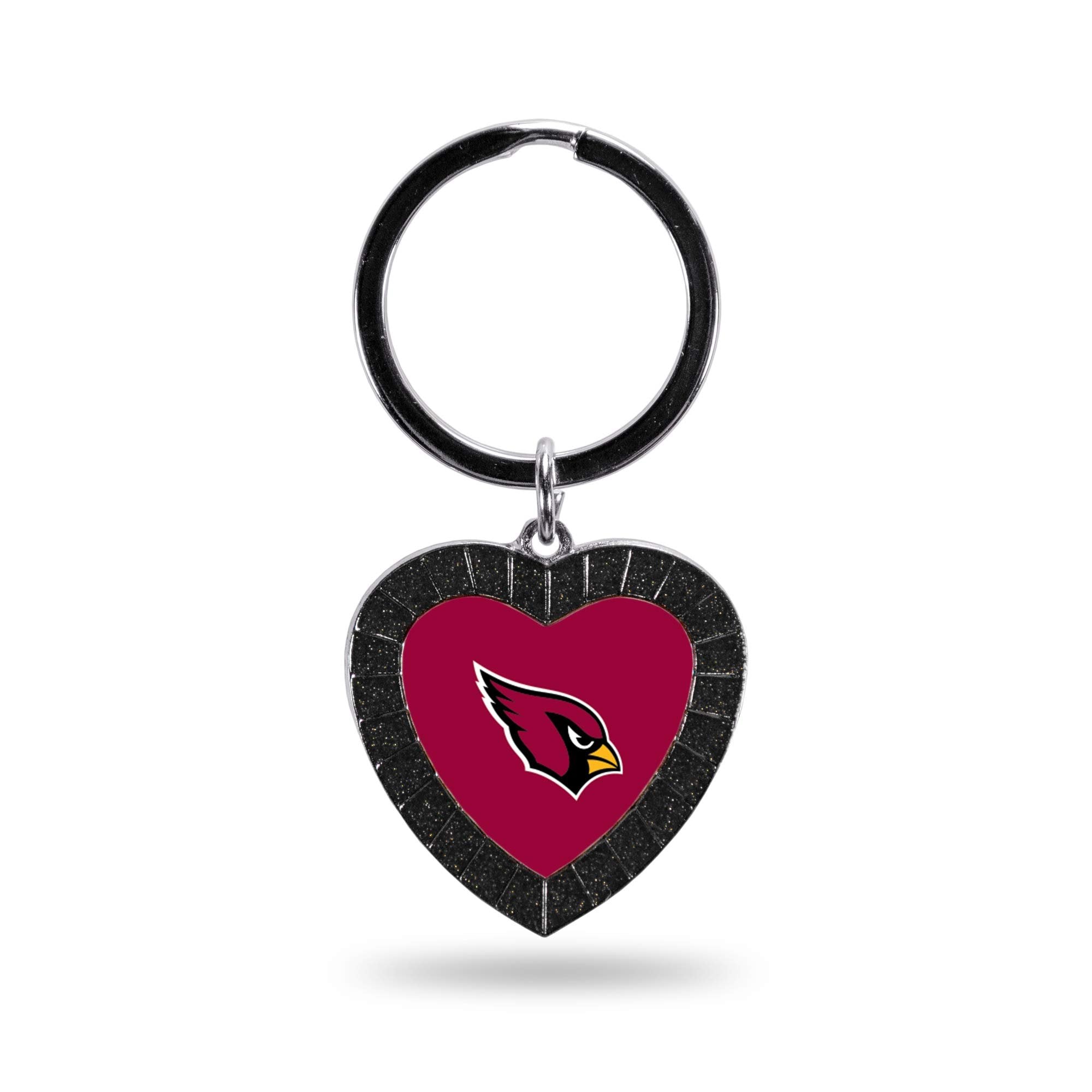 Arizona Cardinals Metal Keychain, Team Color Rhinestone Heart, 3 Inches