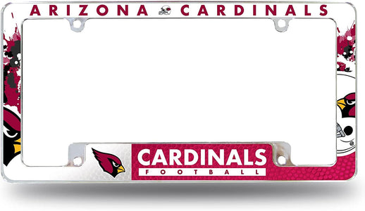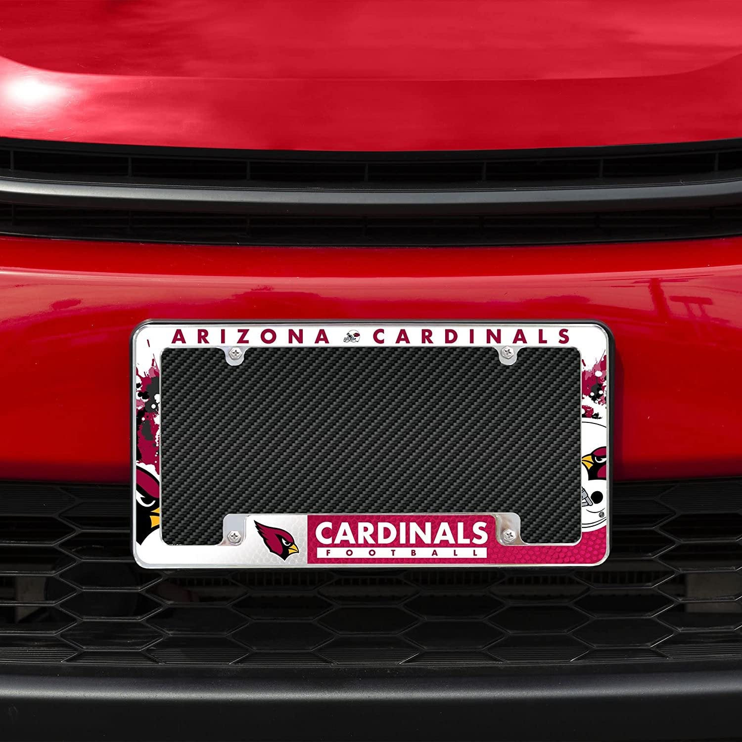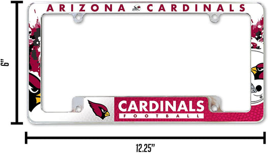 Arizona Cardinals Metal License License Plate Frame Tag Cover, All Over Design, 12x6 Inch