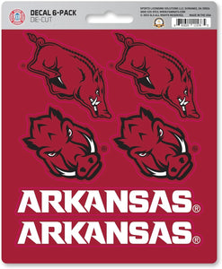 University of Arkansas Razorbacks 6-Piece Decal Sticker Set, 5x6 Inch Sheet, Gift for football fans for any hard surfaces around home, automotive, personal items