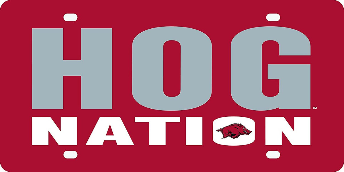 University of Arkansas Razorbacks Premium Laser Cut Tag License Plate, Nation Design, Mirrored Acrylic Inlaid, 6x12 Inch