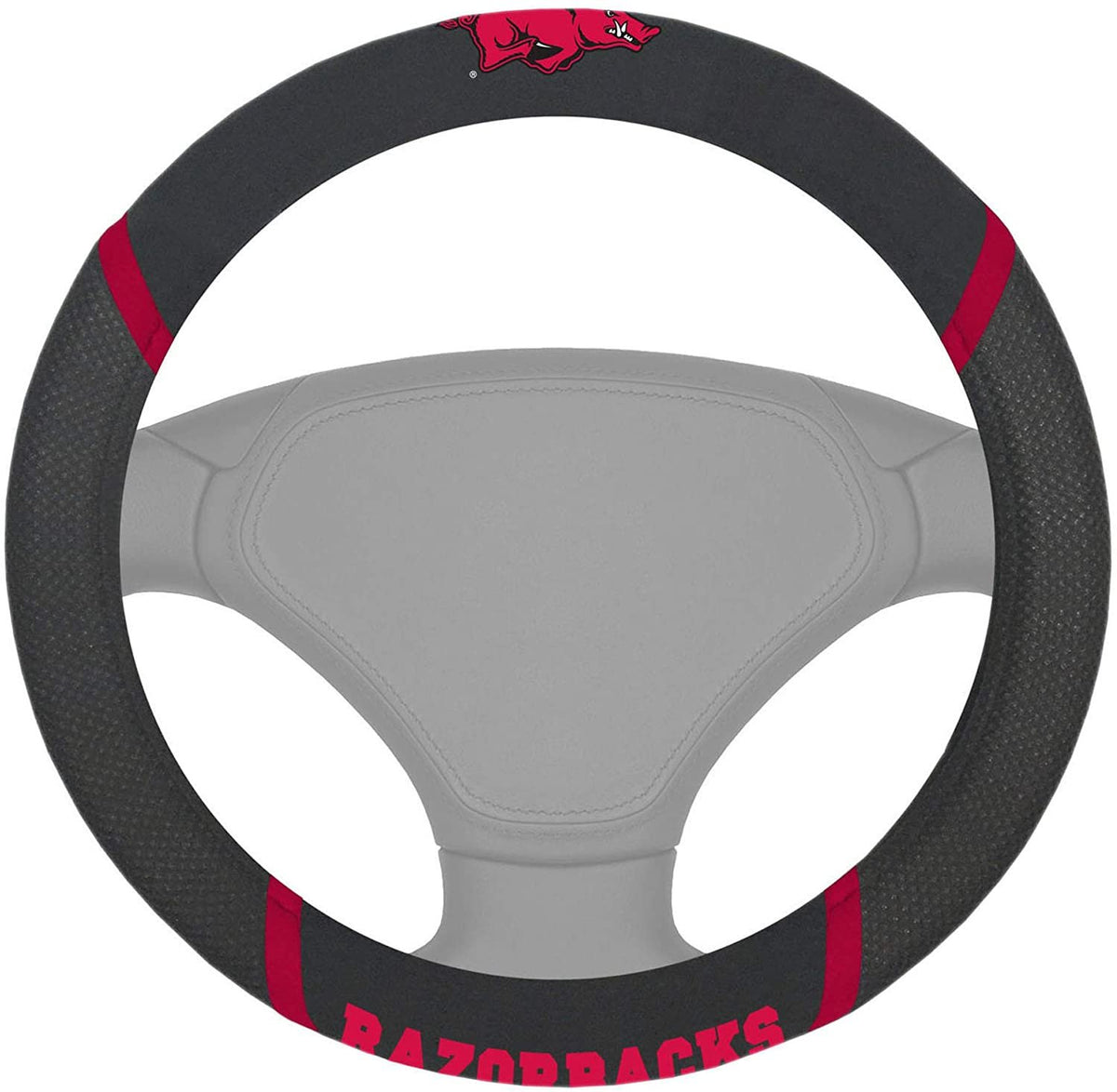 Arkansas Razorbacks Steering Wheel Cover Premium Embroidered Black 15 Inch University of