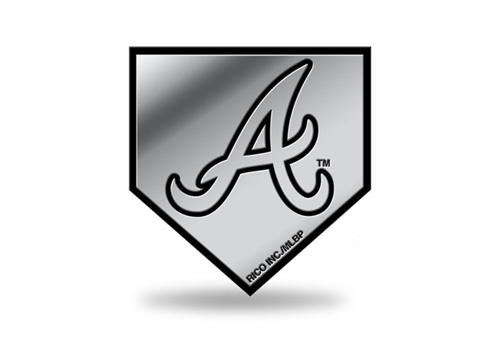 Atlanta Braves Auto Emblem, Silver Chrome Color, Raised Molded Plastic, 3.5 Inch, Adhesive Tape Backing