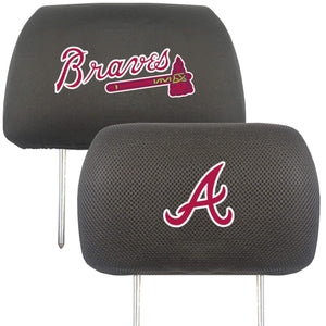 Atlanta Braves Pair of Premium Embroidered Auto Head Rest Covers, Black Elastic, 10x14 Inch