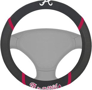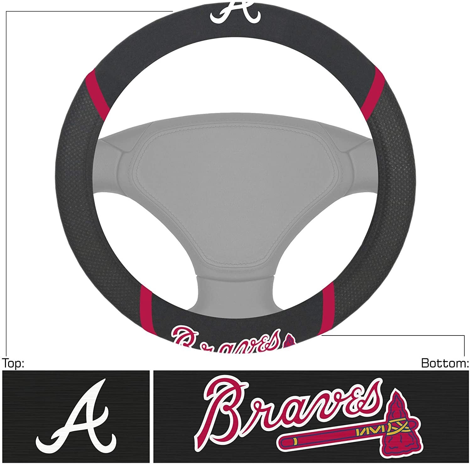 Atlanta Braves Steering Wheel Cover Premium Embroidered Black 15 Inch