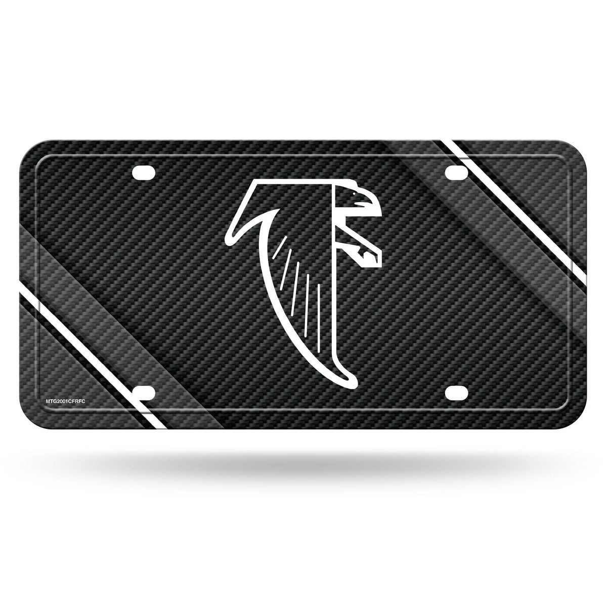 Atlanta Falcons Metal License Plate Frame Chrome Tag Cover, Carbon Fiber Design, 12x6 Inch