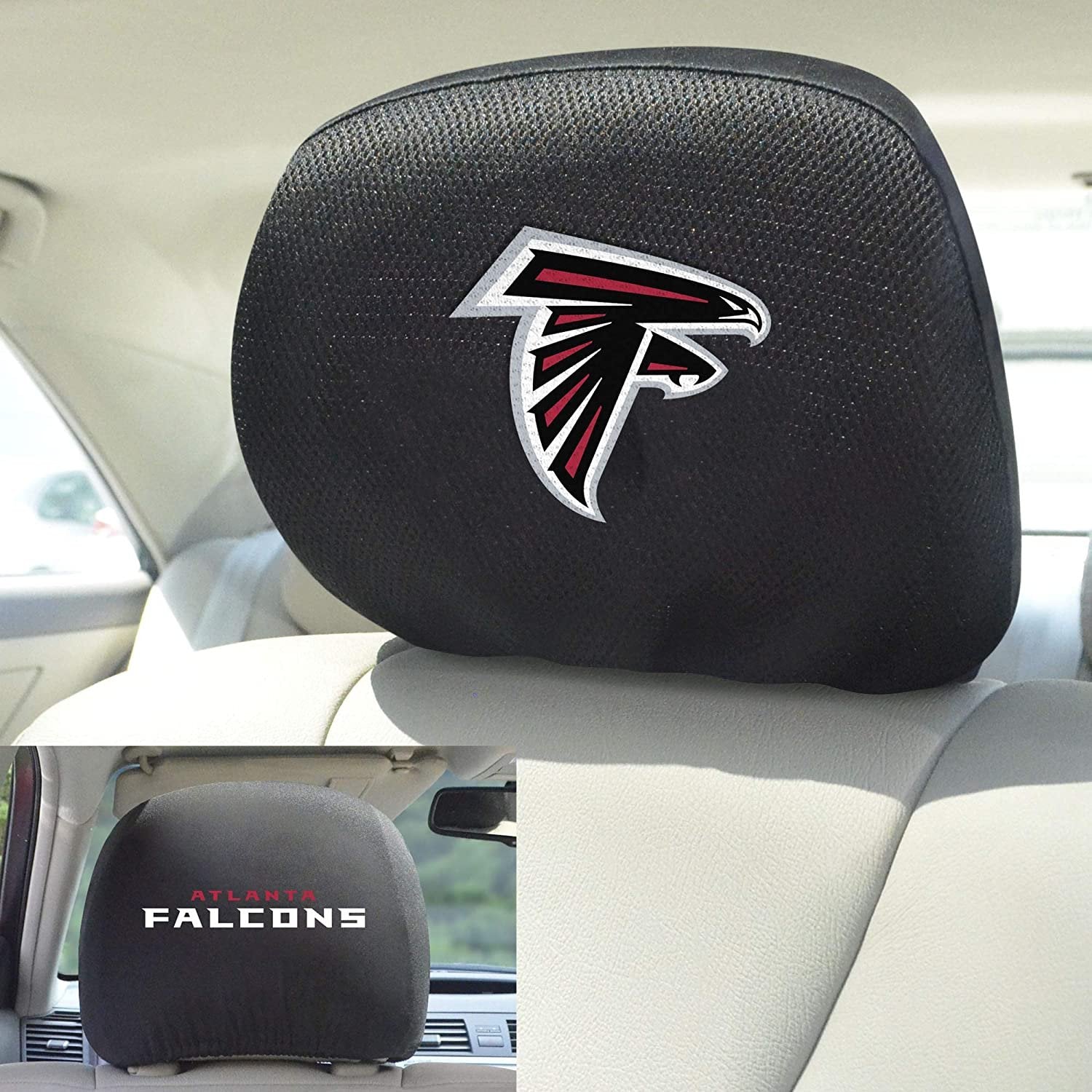 Atlanta Falcons Pair of Premium Auto Head Rest Covers, Embroidered, Black Elastic, 14x10 Inch