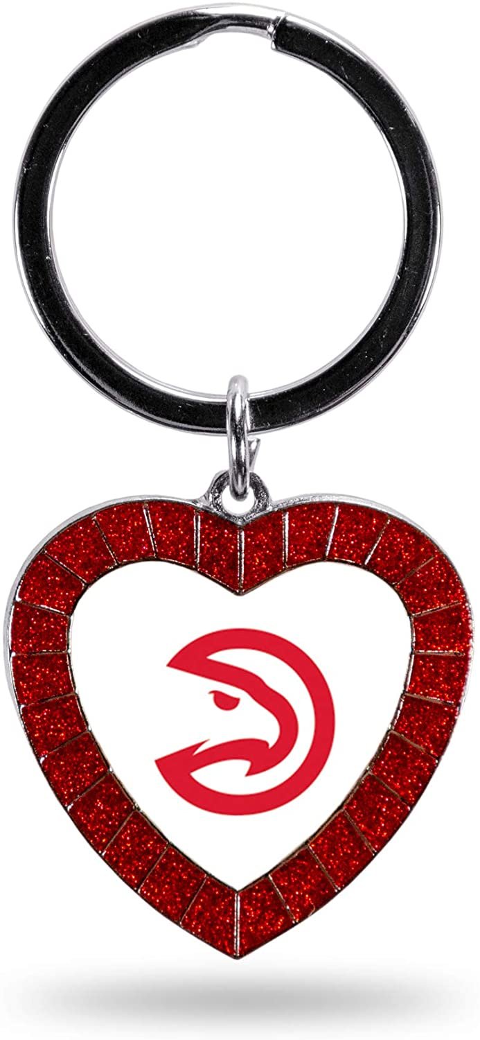 Atlanta Hawks Metal Keychain Rhinestone Colored Heart Shape