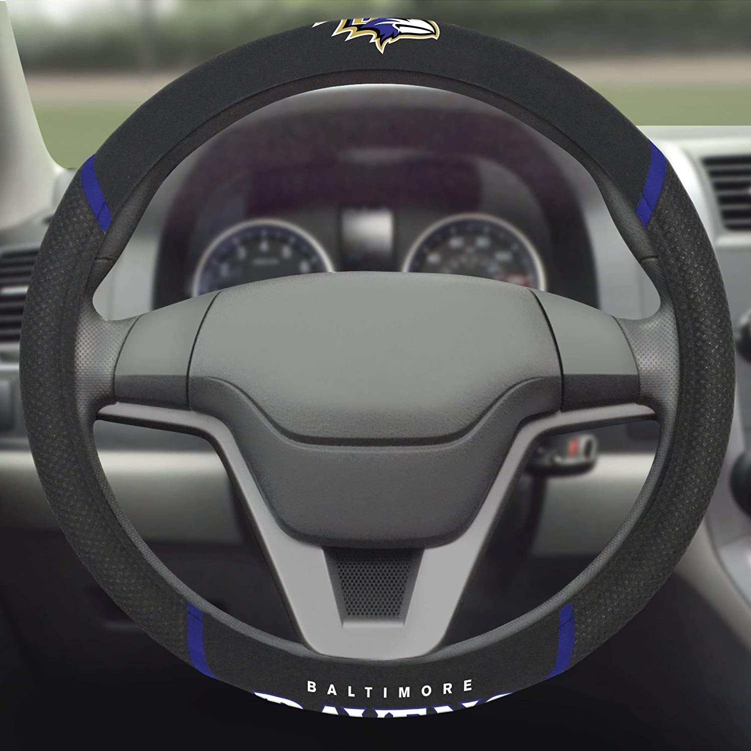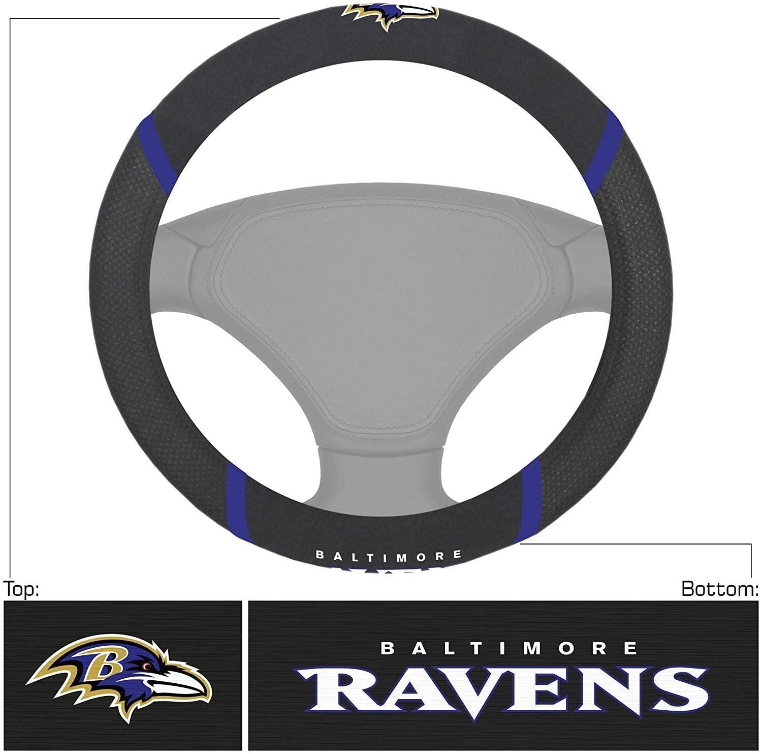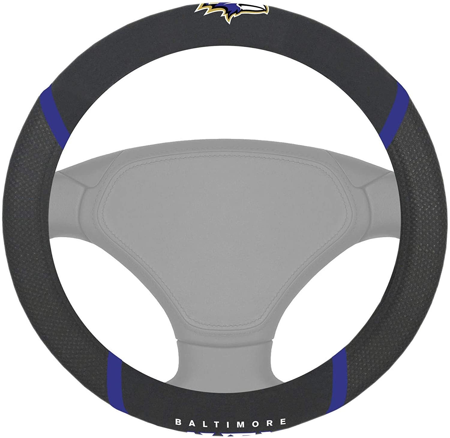 Baltimore Ravens Premium 15 Inch Black Emroidered Steering Wheel Cover
