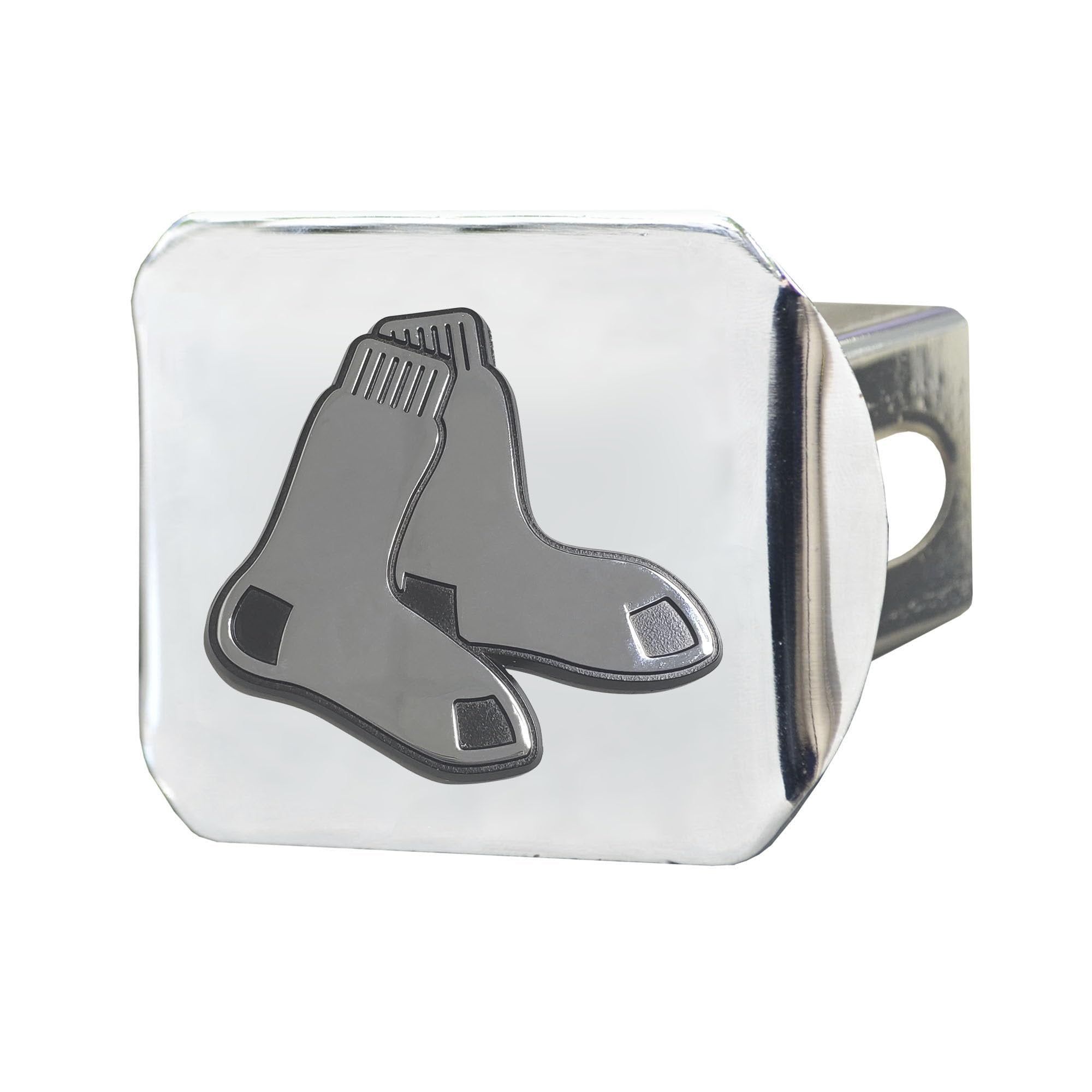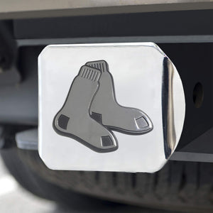 Boston Red Sox Premium Hitch Cover Solid Chrome Metal with Raised Chrome Metal Emblem, 2 Inch Square, Type III, Socks Logo