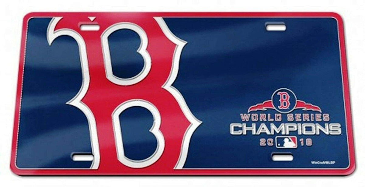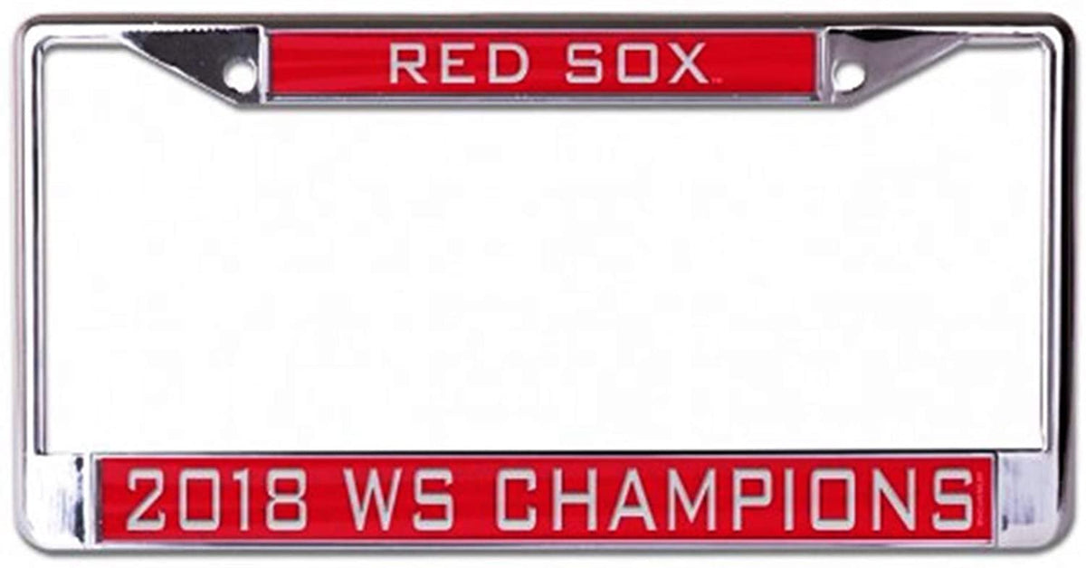 Boston Red Sox Metal License Plate Frame Chrome Tag Cover, Laser Acrylic Mirrored Inserts, 2018 Champions, 12x6 Inch