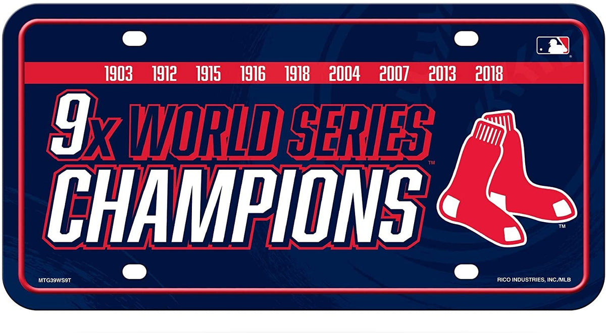 Boston Red Sox Metal Auto Tag License Plate, 9-Time World Series Champions, 6x12 Inch