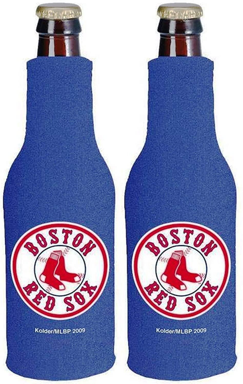 Boston Red Sox Pair of 16oz Drink Zipper Bottle Cooler Insulated Neoprene Beverage Holder, Logo Design