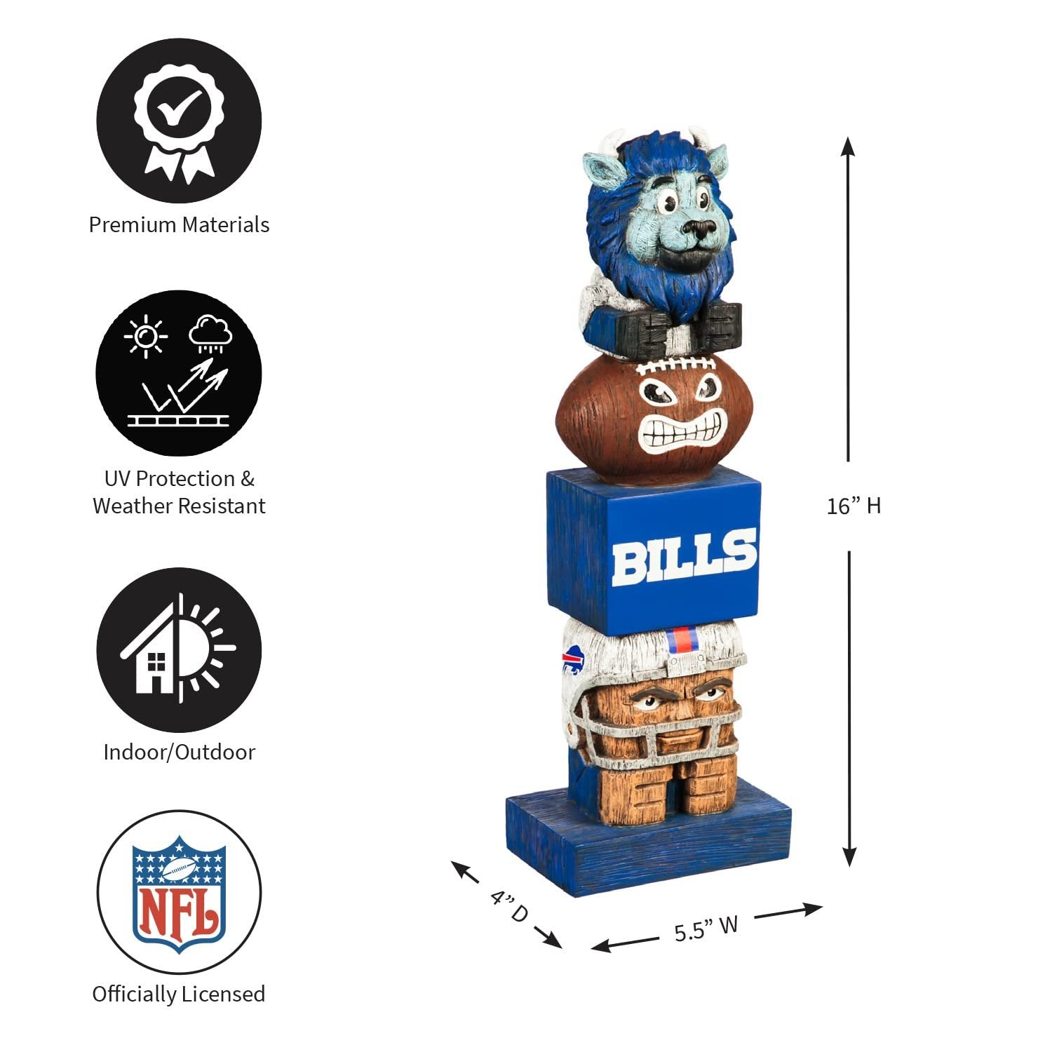 Buffalo Bills Tiki Totem Garden Statue, Hand Painted Resin, 16 Inch, Indoor Outdoor Decorative Sports Mascot, Officially Licensed