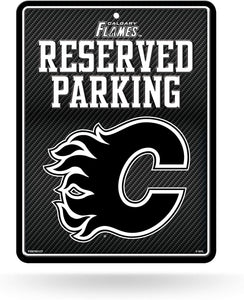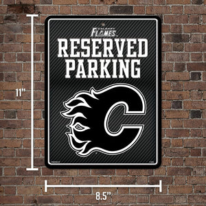 Calgary Flames Metal Parking Sign, Carbon Fiber Design 8.5x11 Inch