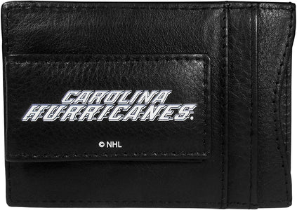 Carolina Hurricanes Black Leather Wallet, Front Pocket Magnetic Money Clip, Printed Logo