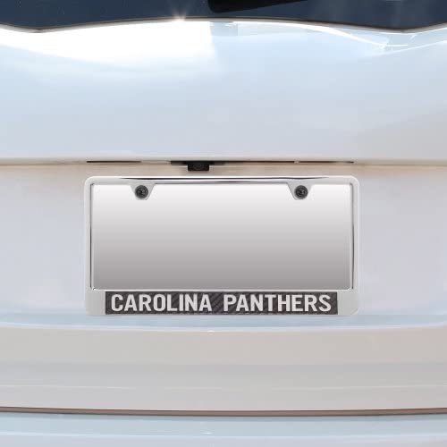 Carolina Panthers Chrome Metal License Plate Tag Cover, Carbon Fiber Design, 12x6 Inch