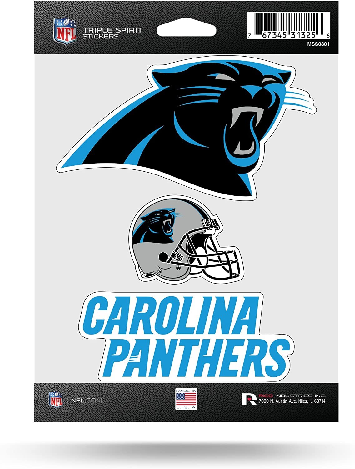 Carolina Panthers Die Cut 3-Piece Triple Spirit Sticker Sheet