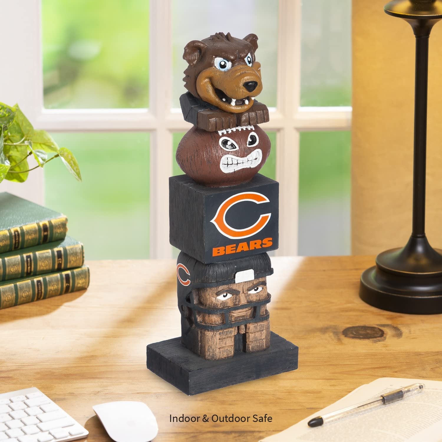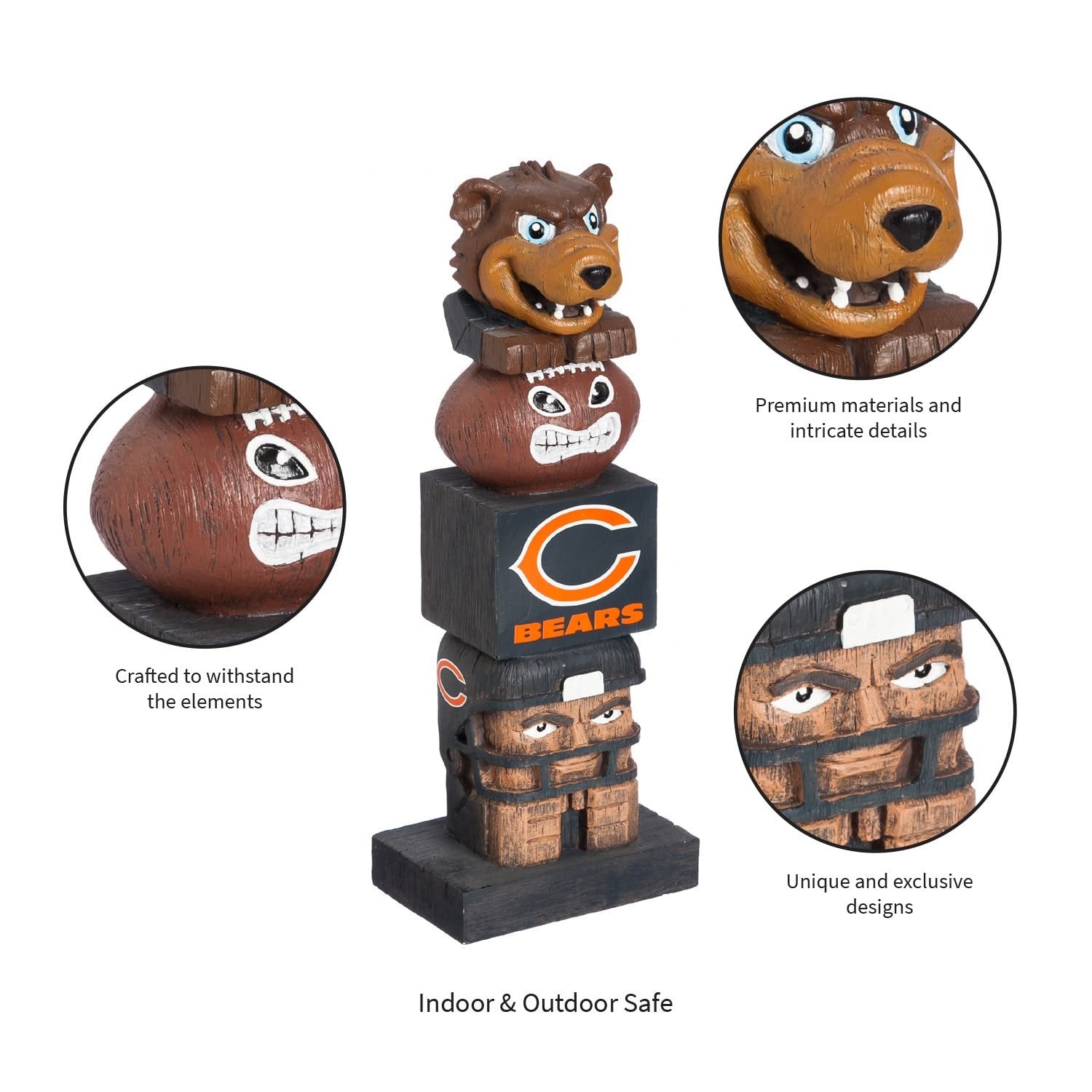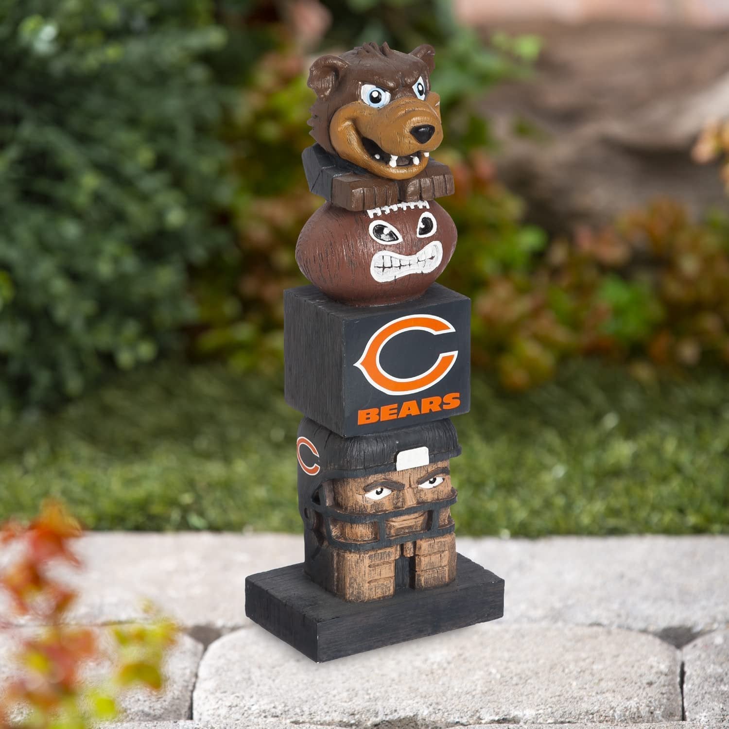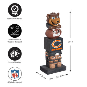 Team Sports America NFL Tiki Totems (16 Inches, Chicago Bears)16 Inch Tiki Totem Garden Statue, Sculpted from Polystone resinHand painted and features detailed wood-carving Designs and logo decal applicationTiki Totem Garden Statue, Hand Painted Resin, Indoor Outdoor Decor, Officially LicensedPerfect for the garden, table top, a tailgate, or your man cave, the statue is outdoor safe for season-round enjoymentMeasures approximately 16 x 4.4 x 3 inchesDecorate Your Home or Yard with this Fun Tiki Totem!