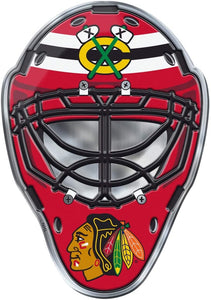 Chicago Blackhawks Mask Auto Emblem, Aluminum Metal, Embossed Team Color, Raised Decal Sticker, Full Adhesive Backing