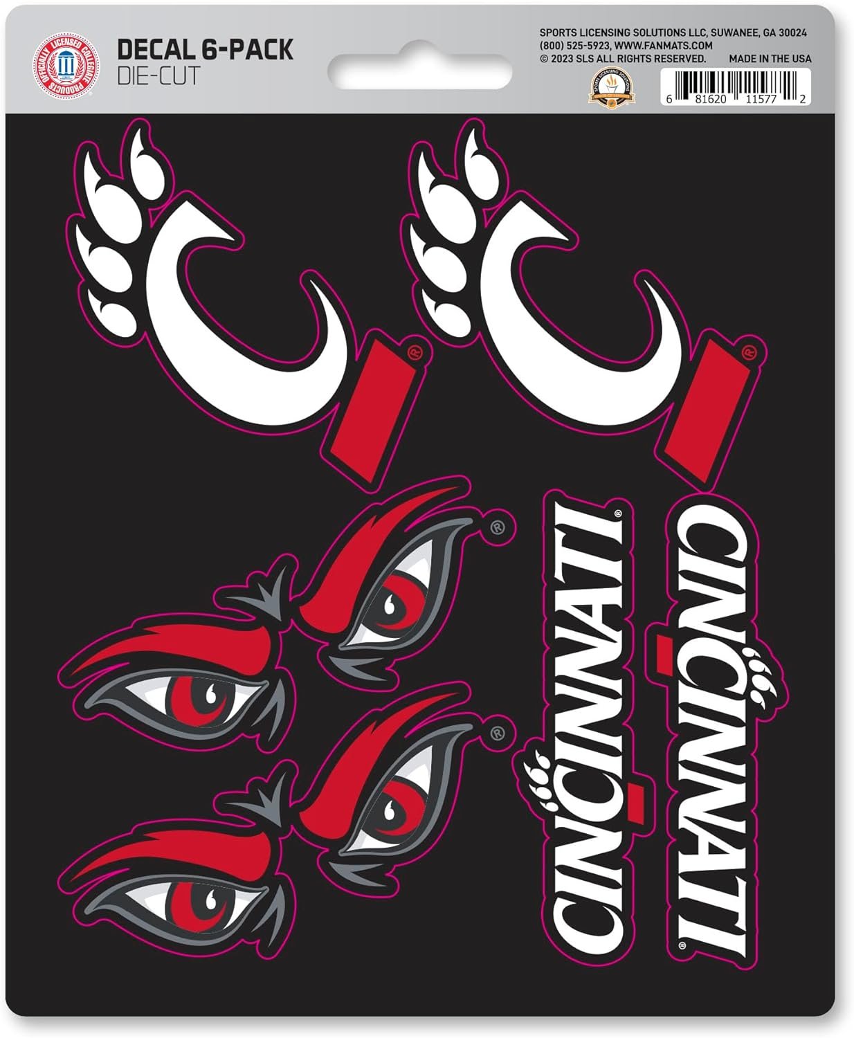 University of Cincinnati Bearcats 6-Piece Decal Sticker Set, 5x6 Inch Sheet, Gift for football fans for any hard surfaces around home, automotive, personal items