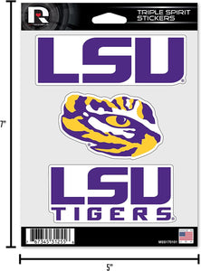 Showcase your team spirit with this eye-catching Die Cut 3-Piece Triple Spirit Sticker Sheet by Rico Industries. Separate Stickers on one 5x7 Inch Sheet. This set includes 3 team colored stickers and is decorated with bold team colors and team logos. It boasts an easy peel and stick application, and can be used on vehicles, lockers, doors and mail boxes. Made in the USA.