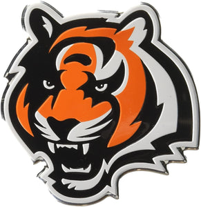 Cincinnati Bengals Auto Emblem, Aluminum Metal, Embossed Team Color, Raised Decal Sticker, Full Adhesive Backing