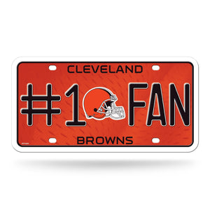 Rico Industries NFL Football Cleveland Browns #1 Fan 6" x 12" Metal Auto Tag - Great for Truck/Car/SUV