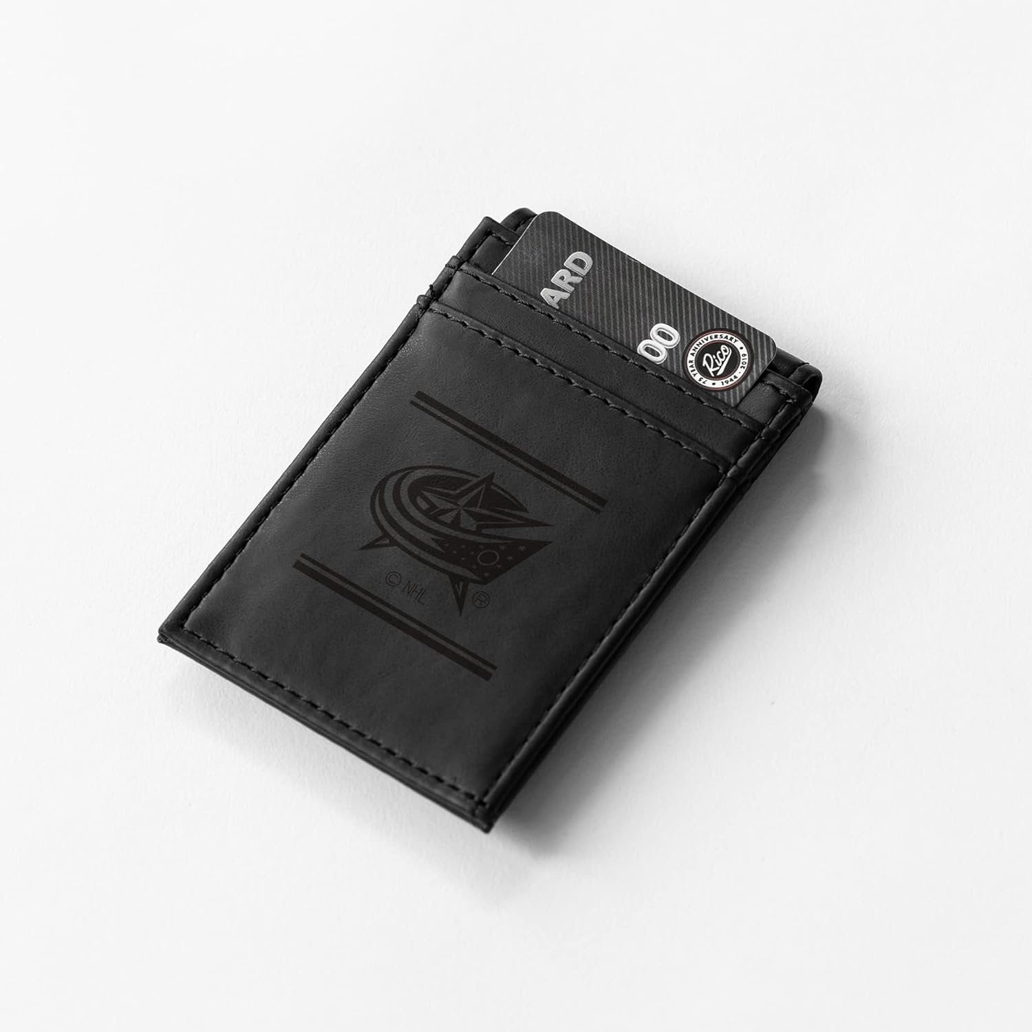 Columbus Blue Jackets Premium Black Leather Wallet, Front Pocket Magnetic Money Clip, Laser Engraved, Vegan