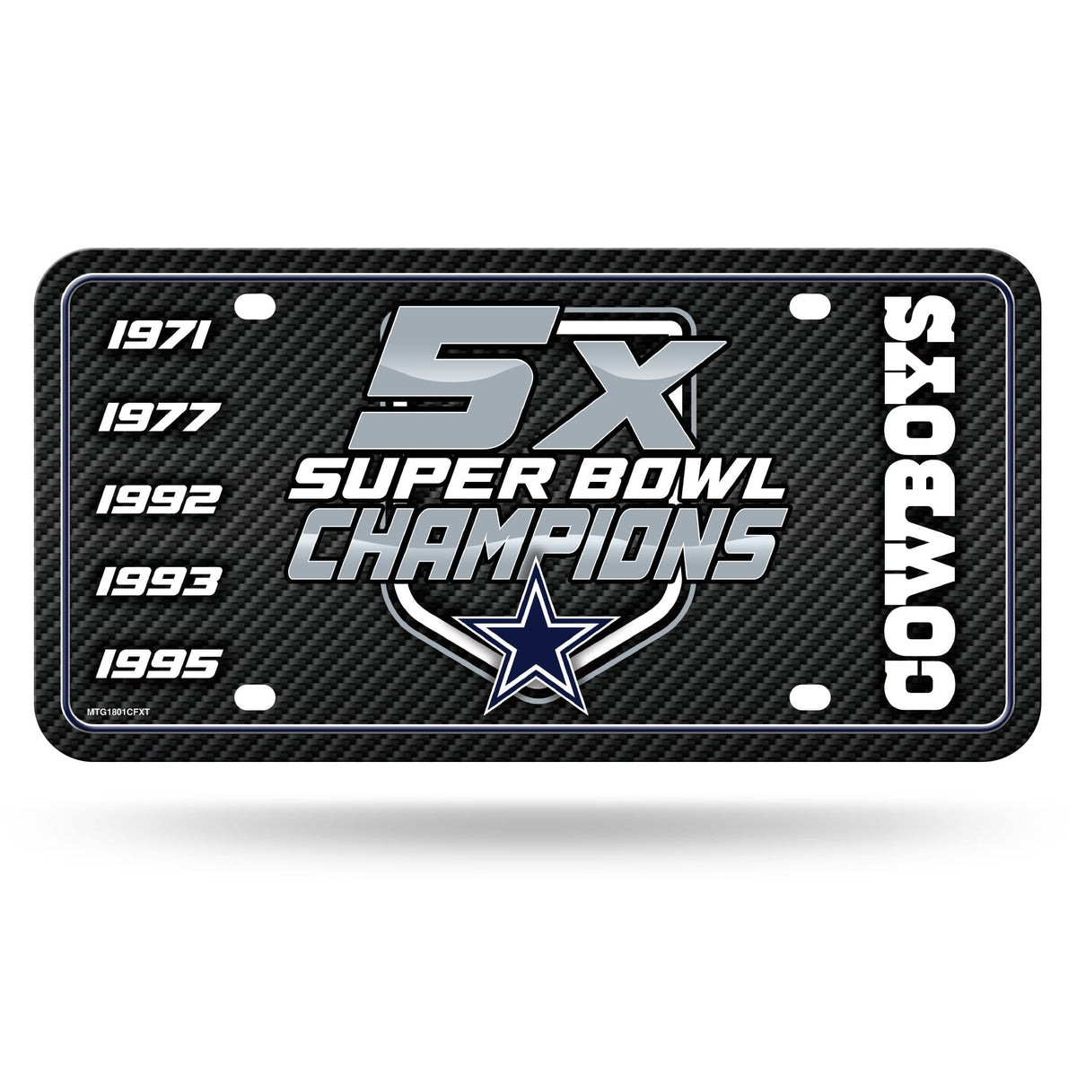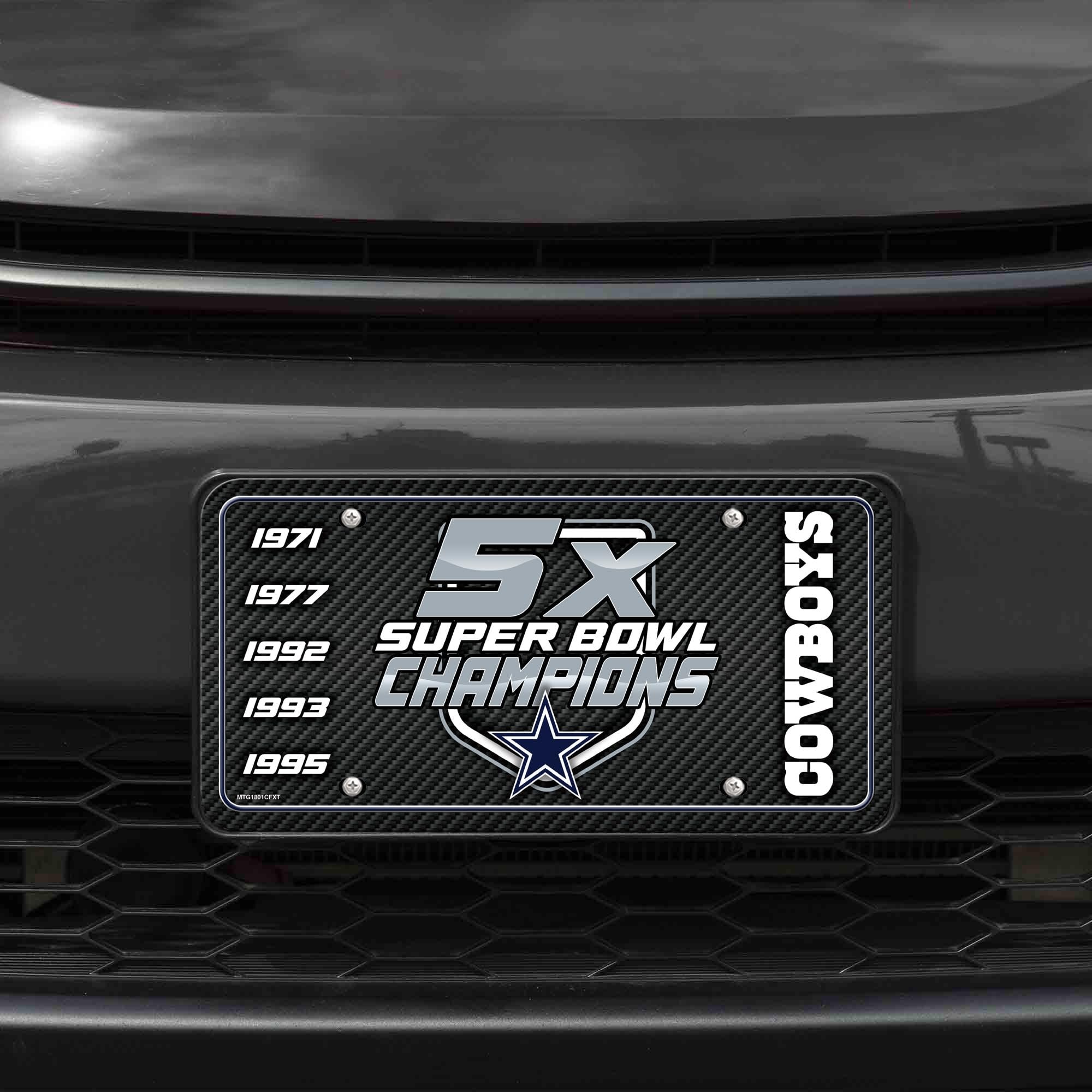 Dallas Cowboys 5-Time Champions Premium Metal Tag License Plate, Carbon Fiber Design, 12x6 inch, Pre-Drilled Holes, Officially Licensed