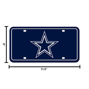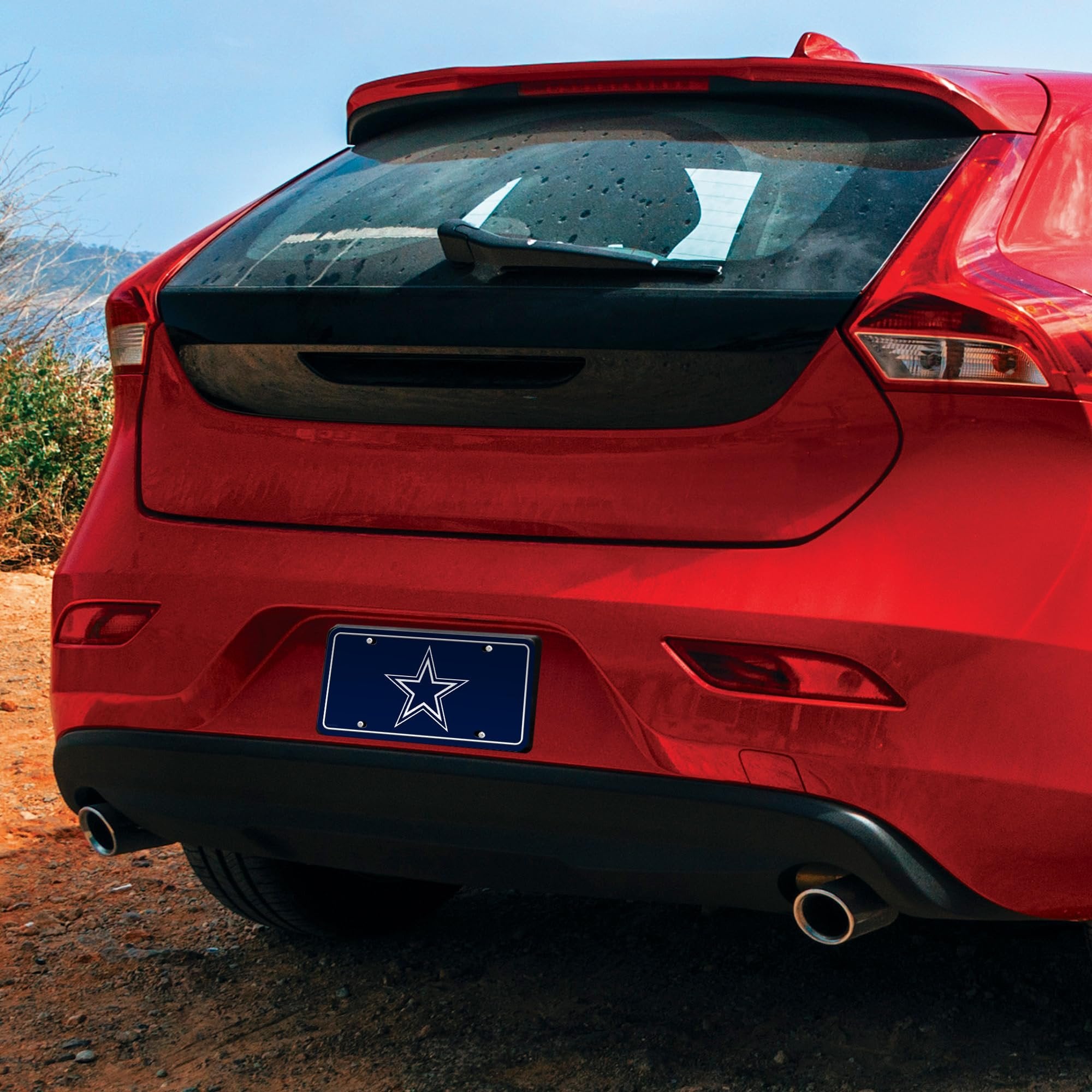Dallas Cowboys Team Logo Metal Auto Tag 6" x 12" A great gift idea for Cowboys football fans that is guaranteed to be a beloved possession with eye catching graphics. Durable and fade resistant, the 12" x 6" automobile tag is expertly made, using quality aluminum which ensures it can survive the different season and extreme weather. This auto accessory is perfect for the casual and everyday fan. Whether it is game day at the stadium or a home game with friends this auto tag will be the highlight of the drive. This tag can be used on the front or back or your car, truck, or RV. It can also be used on your trailer. Has predrilled screw holes to easily attach onto your automobile. Hassle free!Great Gift Item for NFL Football Fans: Guaranteed to be your most beloved possession as it boasts eye catching graphics and is inscribed with your favorite squad’s name and colors. Proudly display your favorite teams name and colorA One-Of-A-Kind Tag – Be the first to own an exceptionally durable, fade resistant 12" x 6" automobile tag. Expertly made, using quality aluminum which ensures your tag can survive the different season and extreme weather.A Fan Favorite 12" x 6" Car/Truck Tag - This auto accessory is perfect for the casual and everyday fan. Whether it is game day at the stadium or a home game with friends this auto tag will be the highlight of the drive.High Performance & Versatile: This brand-new accessory tag can be used on the front or back or your car, truck, or RV. It can also be used on your trailer. Has predrilled screw holes to easily attach onto your automobile. Hassle free!Bring Your Room Car To Life With This Officially Licensed Car/Truck Tag - A limited edition collectible that will be talked about forever whether you are a casual, social, or super fanatic fan. All your friends will be asking you where you got your auto Tag!