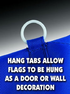 - Easily hang flag outdoors using sewn-in sleeve or indoors with attached hanging tabs