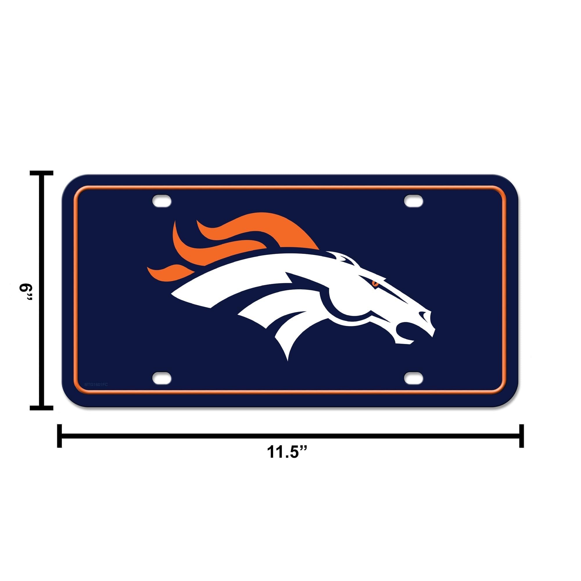 Denver Broncos Team Logo Metal Auto Tag 6" x 12" A great gift idea for Broncos football fans that is guaranteed to be a beloved possession with eye catching graphics. Durable and fade resistant, the 12" x 6" automobile tag is expertly made, using quality aluminum which ensures it can survive the different season and extreme weather. This auto accessory is perfect for the casual and everyday fan. Whether it is game day at the stadium or a home game with friends this auto tag will be the highlight of the drive. This tag can be used on the front or back or your car, truck, or RV. It can also be used on your trailer. Has predrilled screw holes to easily attach onto your automobile. Hassle free!Great Gift Item for NFL Football Fans: Guaranteed to be your most beloved possession as it boasts eye catching graphics and is inscribed with your favorite squad’s name and colors. Proudly display your favorite teams name and colorA One-Of-A-Kind Tag – Be the first to own an exceptionally durable, fade resistant 12" x 6" automobile tag. Expertly made, using quality aluminum which ensures your tag can survive the different season and extreme weather.A Fan Favorite 12" x 6" Car/Truck Tag - This auto accessory is perfect for the casual and everyday fan. Whether it is game day at the stadium or a home game with friends this auto tag will be the highlight of the drive.High Performance & Versatile: This brand-new accessory tag can be used on the front or back or your car, truck, or RV. It can also be used on your trailer. Has predrilled screw holes to easily attach onto your automobile. Hassle free!Bring Your Room Car To Life With This Officially Licensed Car/Truck Tag - A limited edition collectible that will be talked about forever whether you are a casual, social, or super fanatic fan. All your friends will be asking you where you got your auto Tag!