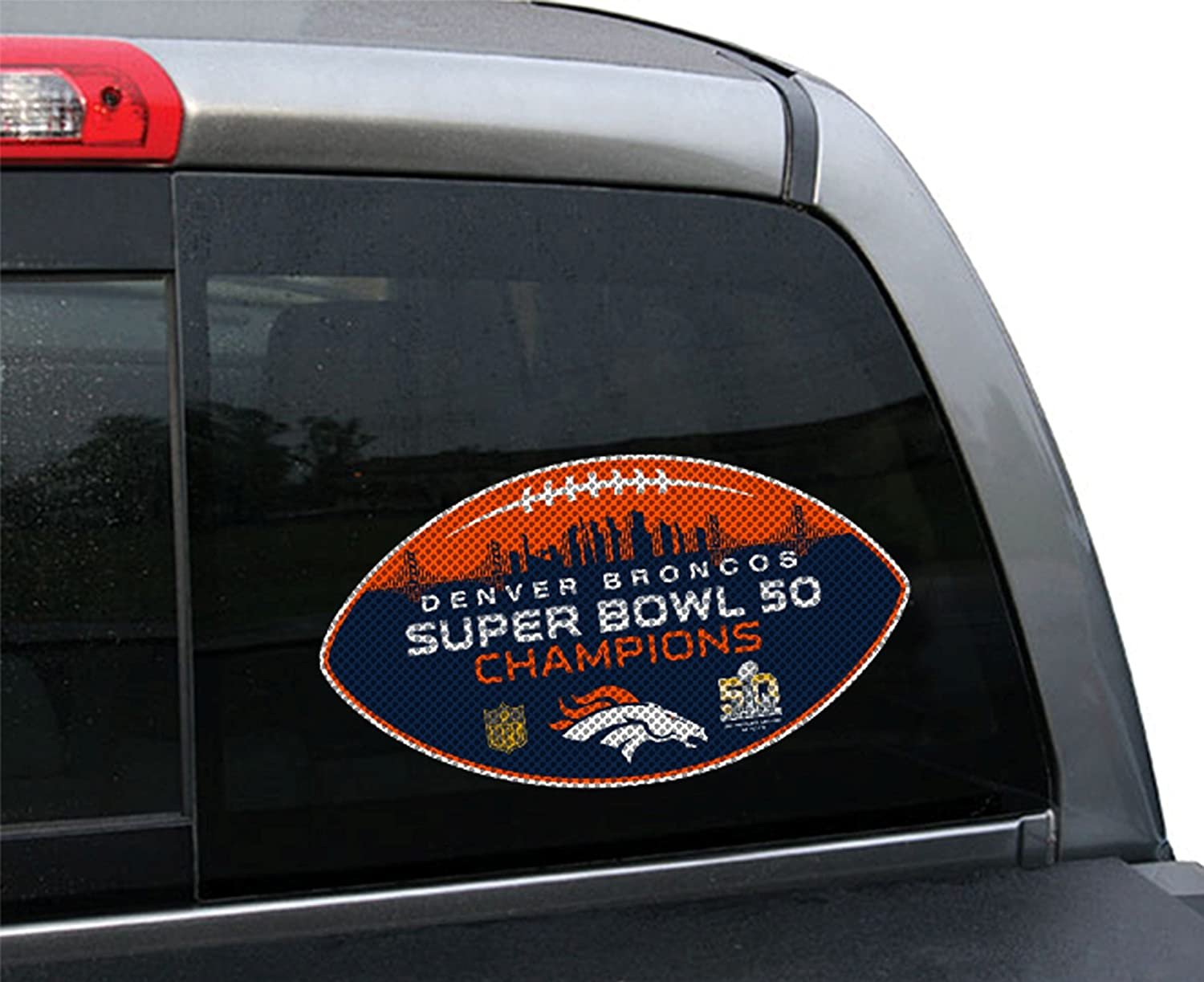 Denver Broncos Super Bowl 50 Champions 12 Inch Preforated Window Film Decal Sticker, One-Way Vision, Adhesive Backing