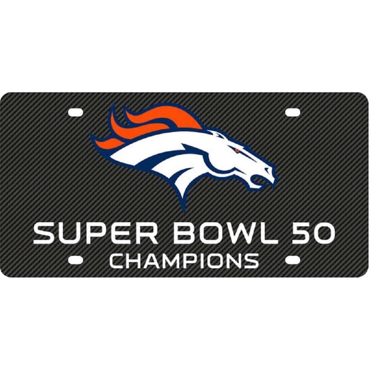 Denver Broncos Super Bowl 50 Champions, Premium Laser Cut Tag License Plate, Carbon Fiber Design, Acrylic Inlaid, 12x6 Inch
