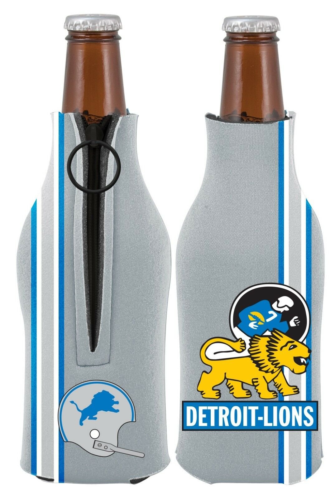 Detroit Lions 2-PACK Zipper BOTTLE Retro THROWBACK Koozie Neoprene Football