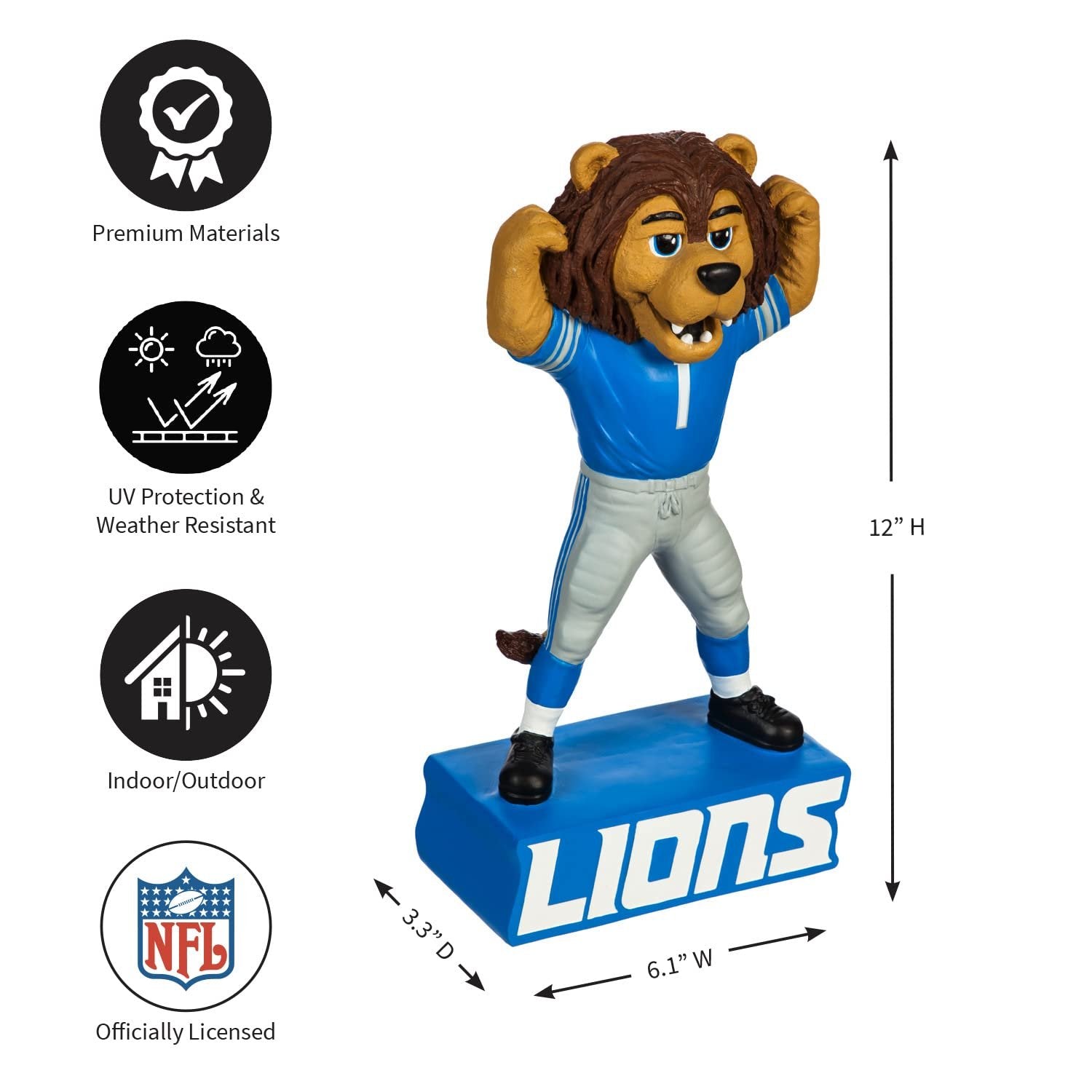 Detroit Lions Team Mascot Garden Statue, Hand Painted Resin, 12 Inch, Indoor Outdoor Decorative Sports Mascot, Officially Licensed