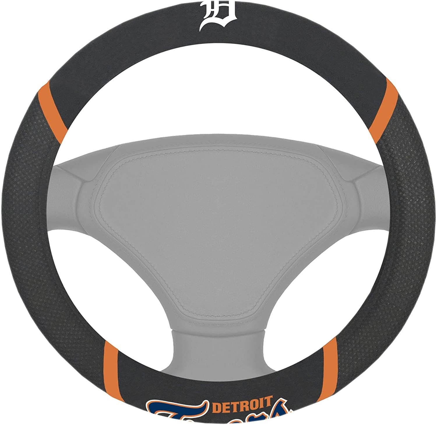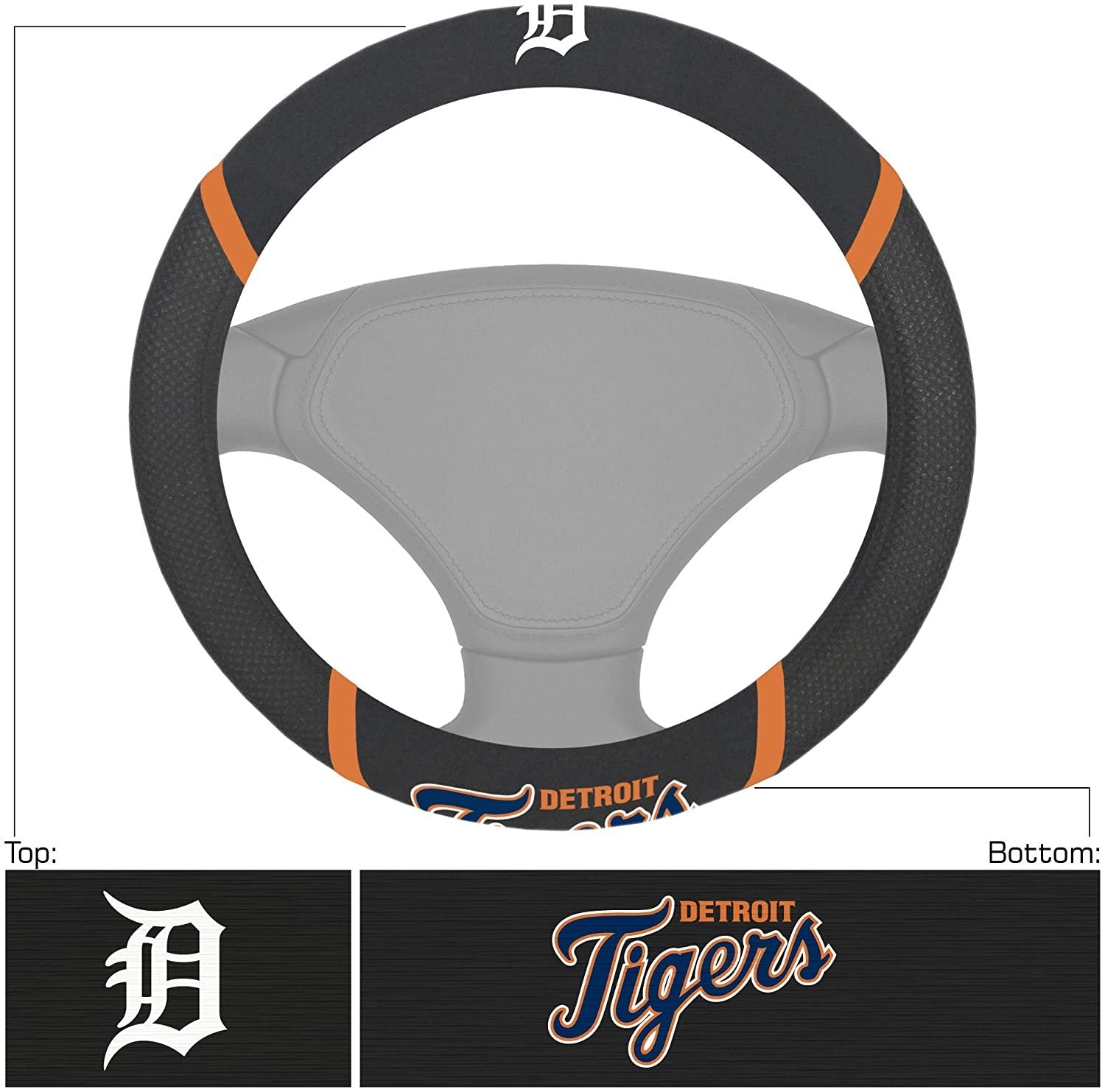 Detroit Tigers Steering Wheel Cover Premium Embroidered Black 15 Inch