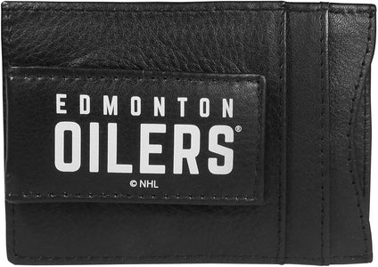 Edmonton Oilers Black Leather Wallet, Front Pocket Magnetic Money Clip, Printed Logo