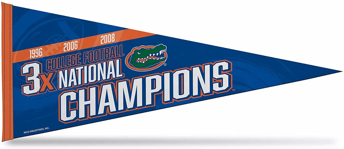 University of Florida Gators 3-Time Champions Soft Felt Pennant, 12x30 Inch, Easy To Hang