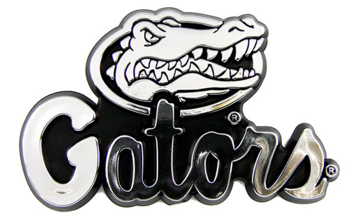 University of Florida Gators Auto Emblem, Plastic Molded, Silver Chrome Color, Raised 3D Effect, Adhesive Backing