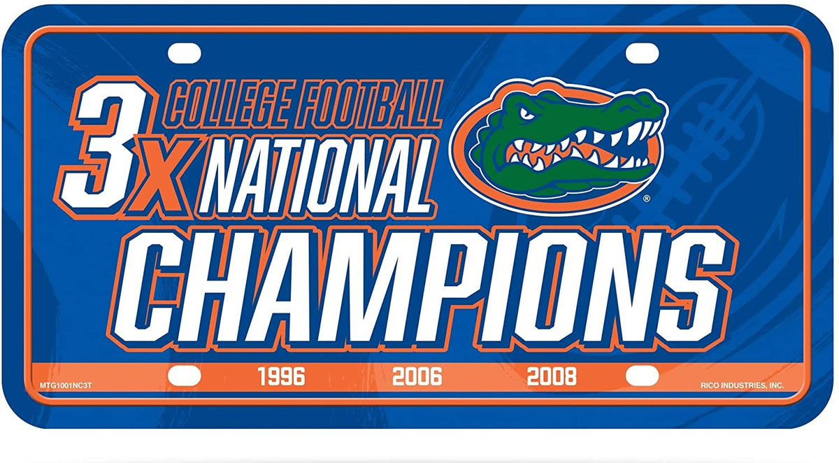 University of Florida Gators Metal Auto Tag License Plate, 3-Time Champions, 6x12 Inch