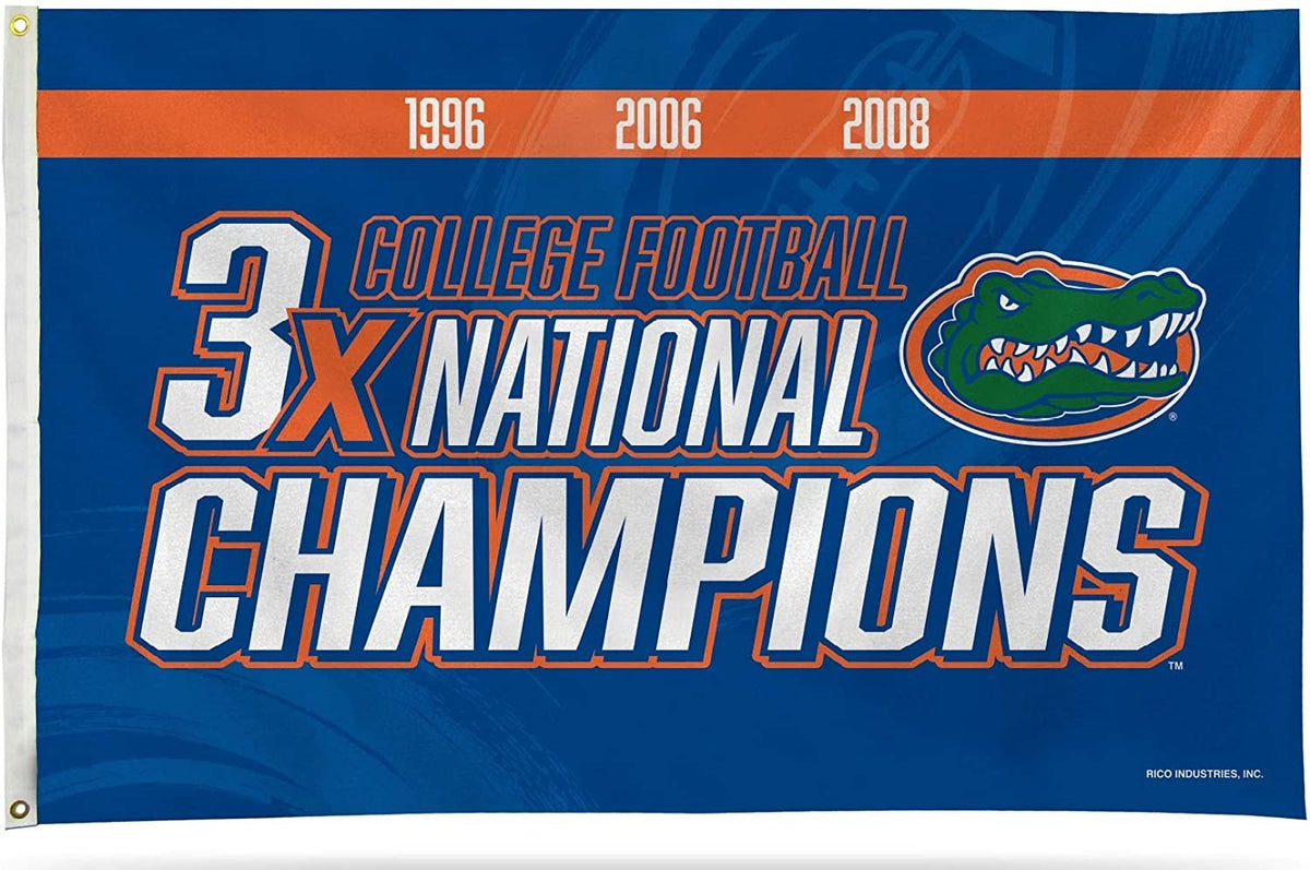 University of Florida Gators 3-Time Champions Premium 3x5 Feet Flag Banner, Logo Design, Metal Grommets, Outdoor Use, Single Sided