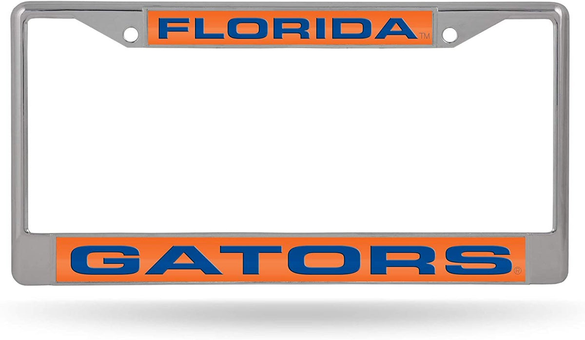 University of Florida Gators Chrome Metal License Plate Frame Tag Cover, Laser Acrylic Mirrored Inserts, 12x6 Inch