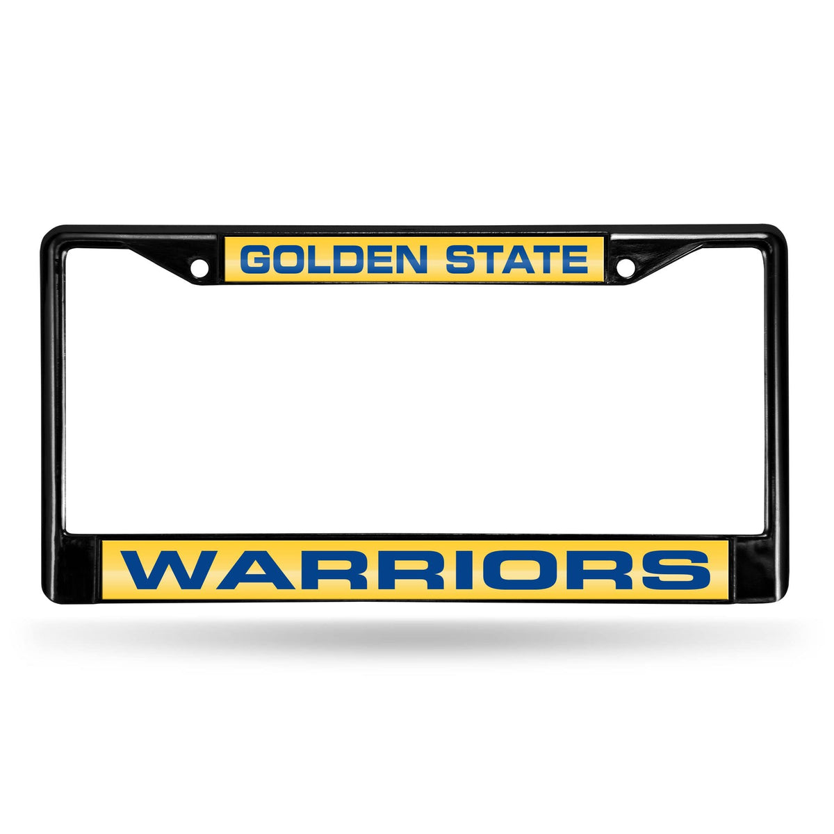 Golden State Warriors Black Metal License Plate Frame Tag Cover, Laser Acrylic Mirrored Inserts, 12x6 Inch