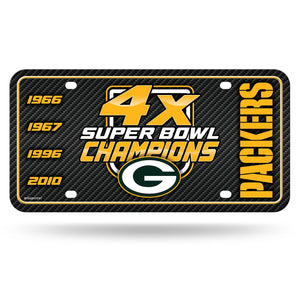Green Bay Packers Multi Champ Carbon Fiber Design Metal Auto Tag 6" x 12" A great gift idea for Green Bay Packers football fans that is guaranteed to be a beloved possession with eye catching graphics. Durable and fade resistant, the 12" x 6" automobile tag is expertly made, using quality aluminum which ensures it can survive the different season and extreme weather. This auto accessory is perfect for the casual and everyday fan. Whether it is game day at the stadium or a home game with friends this auto tag will be the highlight of the drive. This tag can be used on the front or back or your car, truck, or RV. It can also be used on your trailer. Has predrilled screw holes to easily attach onto your automobile. Hassle free!Great Gift Item for NFL Football Fans: Guaranteed to be your most beloved possession as it boasts eye catching graphics and is inscribed with your favorite squad’s name and colors. Proudly display your favorite teams name and colorA One-Of-A-Kind Tag – Be the first to own an exceptionally durable, fade resistant 12" x 6" automobile tag. Expertly made, using quality aluminum which ensures your tag can survive the different season and extreme weather.A Fan Favorite 12" x 6" Car/Truck Tag - This auto accessory is perfect for the casual and everyday fan. Whether it is game day at the stadium or a home game with friends this auto tag will be the highlight of the drive.High Performance & Versatile: This brand-new accessory tag can be used on the front or back or your car, truck, or RV. It can also be used on your trailer. Has predrilled screw holes to easily attach onto your automobile. Hassle free!Bring Your Room Car To Life With This Officially Licensed Car/Truck Tag - A limited edition collectible that will be talked about forever whether you are a casual, social, or super fanatic fan. All your friends will be asking you where you got your auto Tag!